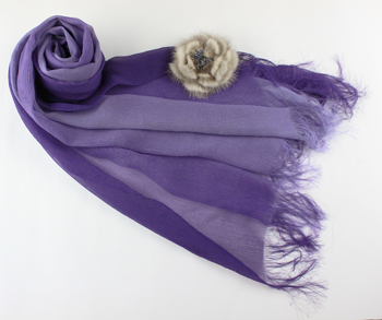 ・シルクスカーフ (ORIGINAL) ¥27,000(本体価格 ¥25,000) シルバー×ホワイトのシルクサテンをフリンジ付きで作製
