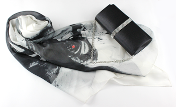 ・ストール (S.SHOBEY) ¥27,000(本体価格 ¥25,000) 筆で描いた柄の大判ストールが大人の雰囲気を演出します 88cm×180cm(日本製)