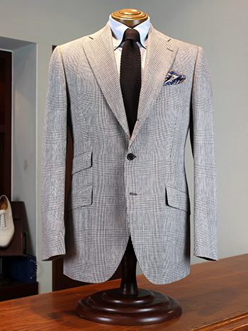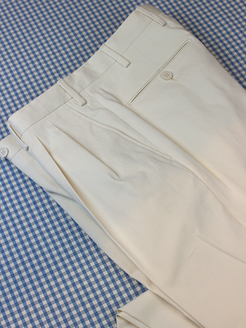 スーパー140のトロピカルウールは光沢感があり、サマーウールやリネンのアースカラーを使ったジャケットとの合せがエレガントです。