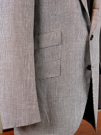 リネン混紡の大柄グレンチェックは、ジャケットらしい雰囲気のスラントしたチェンジポケットで仕上げています。