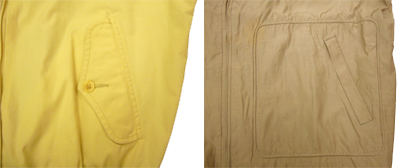袖はセットインスリーブで袖口はボタン留めでした。ポケットの周りにぐるっとパイピングがしてあり、ポケットの口は後ろが前に重なる雨蓋になっています。