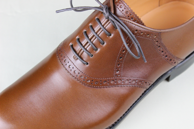 サドルと云うように、「馬の鞍」状に独立した革を上から下までグルリと被せています。アメリカに渡ってから、その特徴がより強調され、ティーン・エイジャー向けの学生靴や、ダンス・ゴルフ、そしてボーリング用のスポーツ・シューズのデザインとして2色使いで広まっていきます。